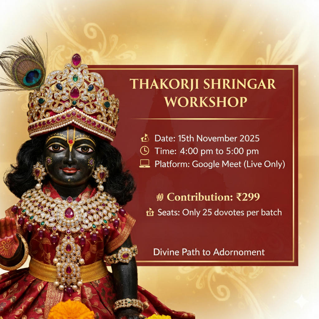 For the past five years, Megh Soni has been devoted to bringing the beauty and depth of Shringar Seva to countless Vaishnavs across the world. Through more than 800 videos, he has simplified the art of Seva – from daily Shringar to Vastra and Sugandhi, explaining how every offering changes with the ritu (season), utsav, and bhav.